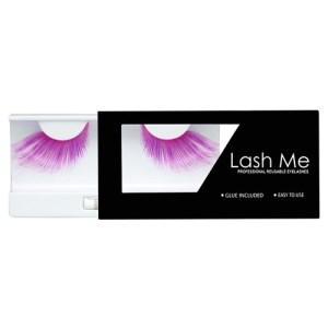 Dense outward graduation of extra long hot pink and purple lashes;