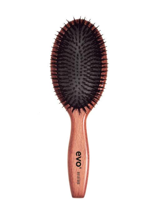 evo Bradford Pin Bristle Brush dresses hair for polished and smooth styling; especially on long, thick, wavy or curly hair. Natural boar bristles help maintain the health and condition of hair, where its unique structure carries sebum from the scalp to the end of the hair shaft. By coating each hair strand with sebum,